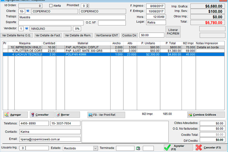Software especializado para empresas gráficas, con el desarrollo de todo su circuito de producción, generando órdenes de trabajo que permiten analizar su proceso para obtener la forma más eficiente de realizar los trabajos.