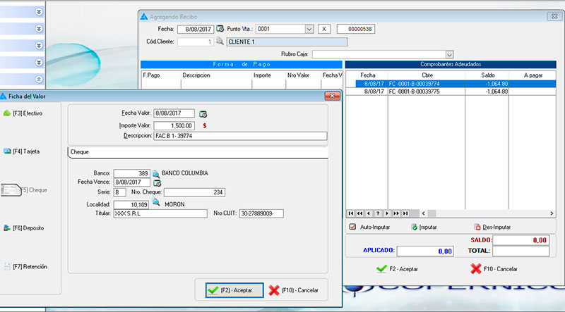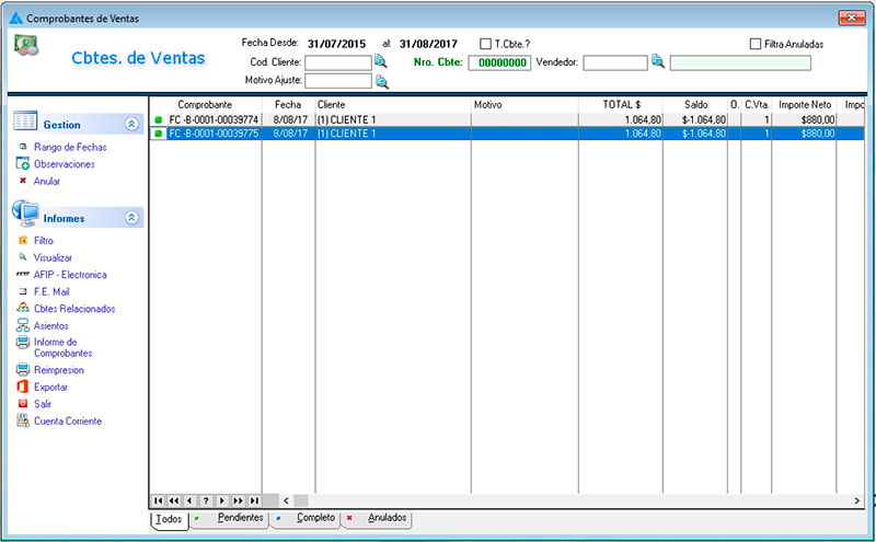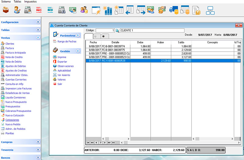 Administrador de facturas, recibos, Notas de crédito y débito
