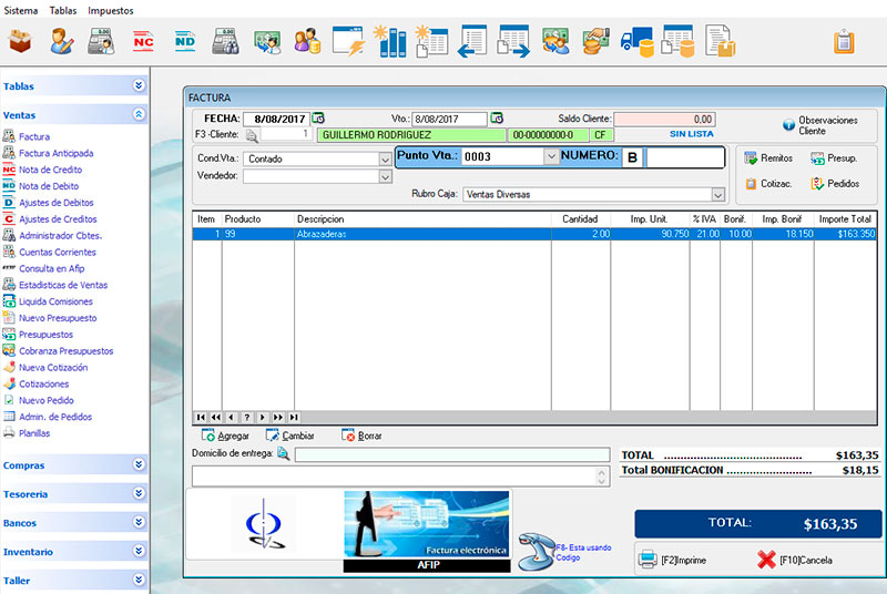 Realización de Factura Electrónica.