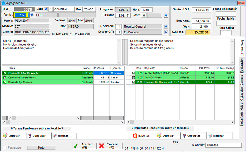 Software especializado para talleres, con el desarrollo de todo su circuito de reparación, generando órdenes de trabajo que permiten analizar su proceso para obtener la forma más eficiente de realizar los trabajos.