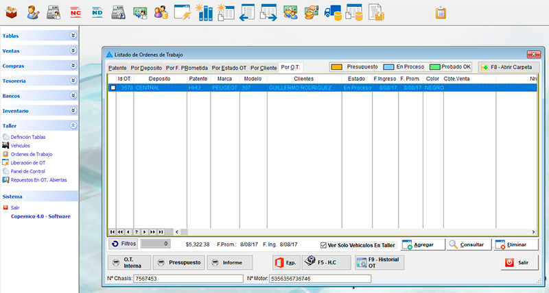Software exclusivo a la producción de talleres y servicios mecánicos, con todo el circuito de reparación generando ordenes de trabajo por cada vehículo que ingresa a su taller.